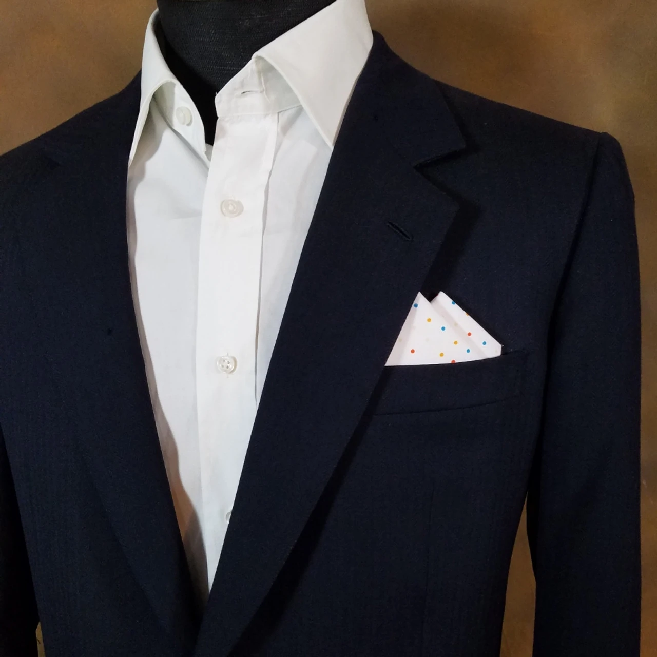 Dress up your suit or sport coat with a pre-folded pocket square. It’s easy to use and looks like a well placed pocket square. Just slip the insert into your breast pocket and adjust height to your taste. Trim bottom of card if you want less pocket square showing.