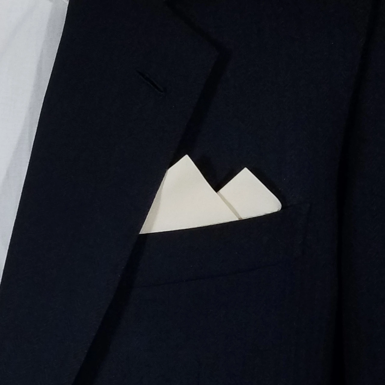 Dress up your suit or sport coat with a pre-folded pocket square. It’s easy to use and looks like a well placed pocket square. Just slip the insert into your breast pocket and adjust height to your taste. Trim bottom of card if you want less pocket square showing.
