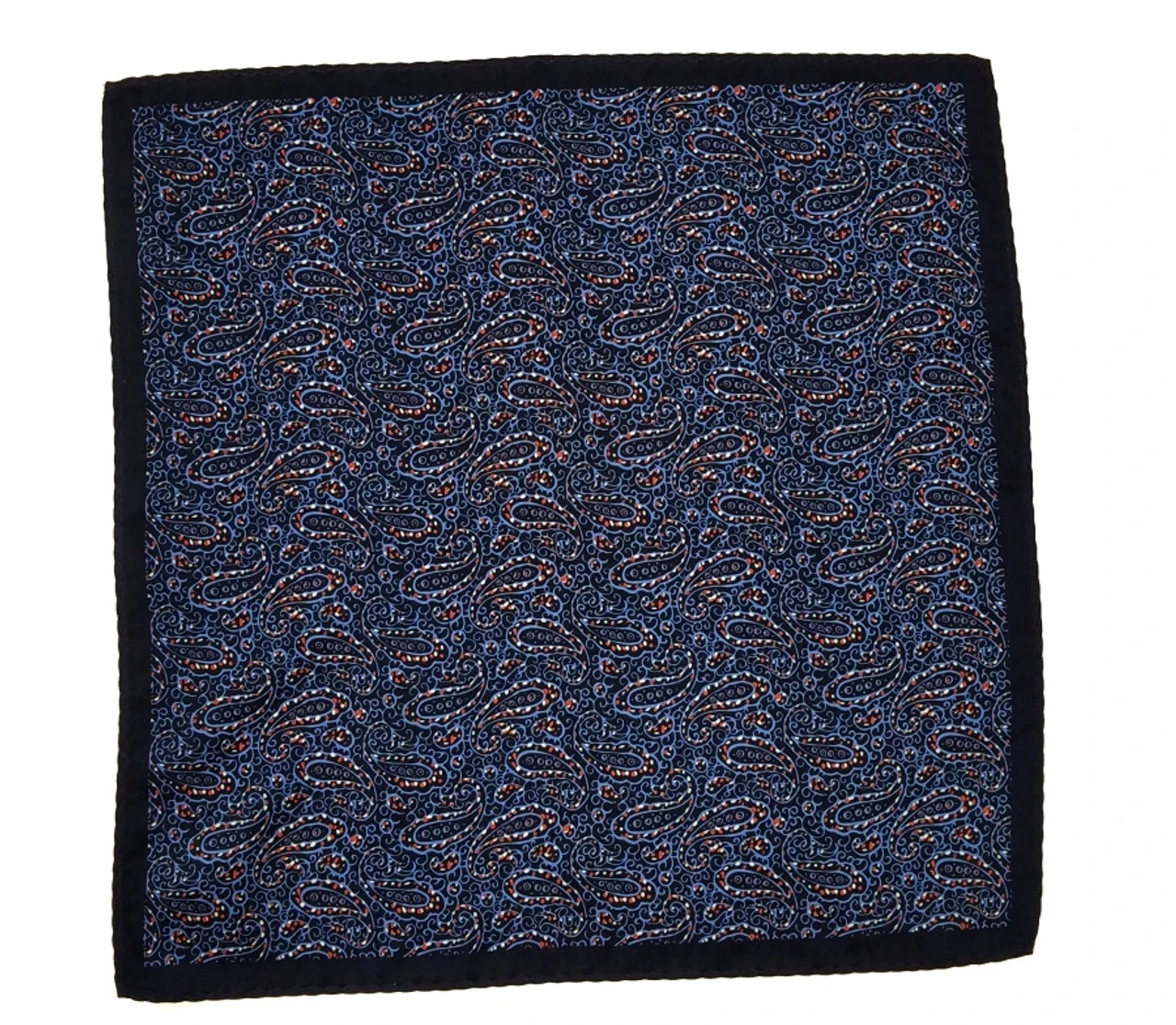 100% Silk Pocket Square – Dark Blue Small Paisley Design 12.5 X 12.5
