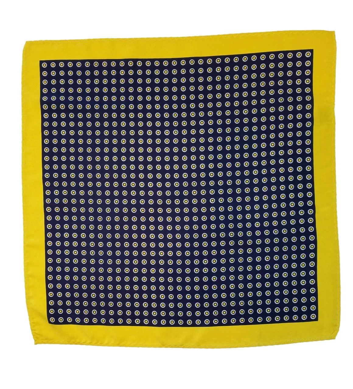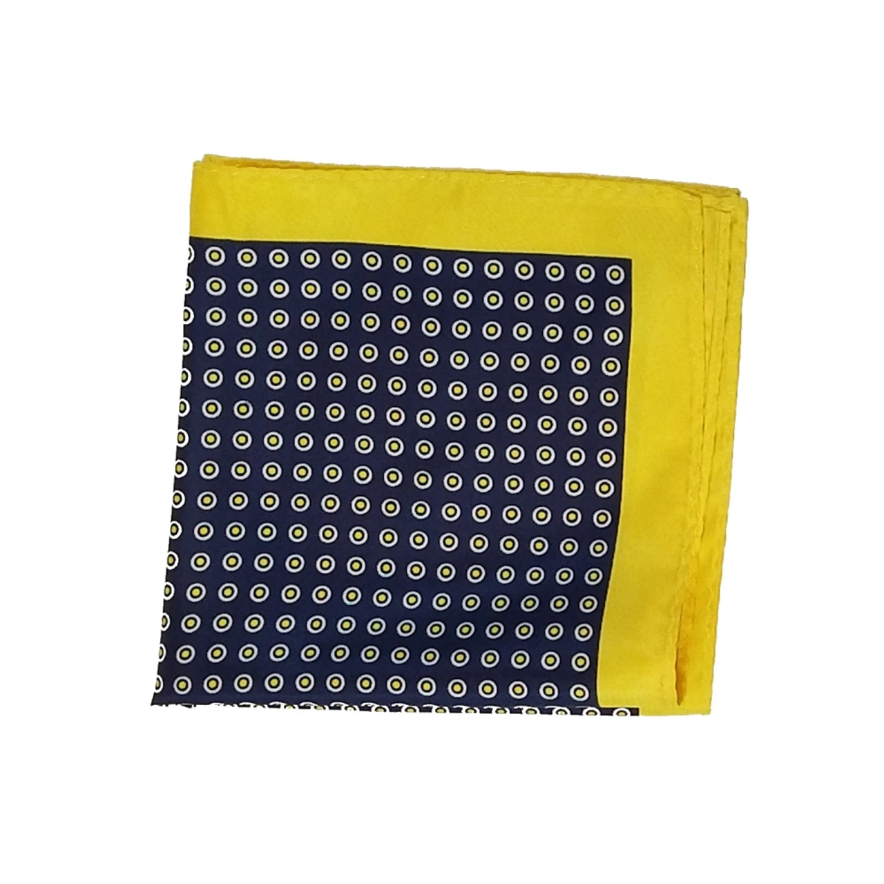 100% Silk Pocket Square – Navy Blue & Yellow Polka Dot 12.5in