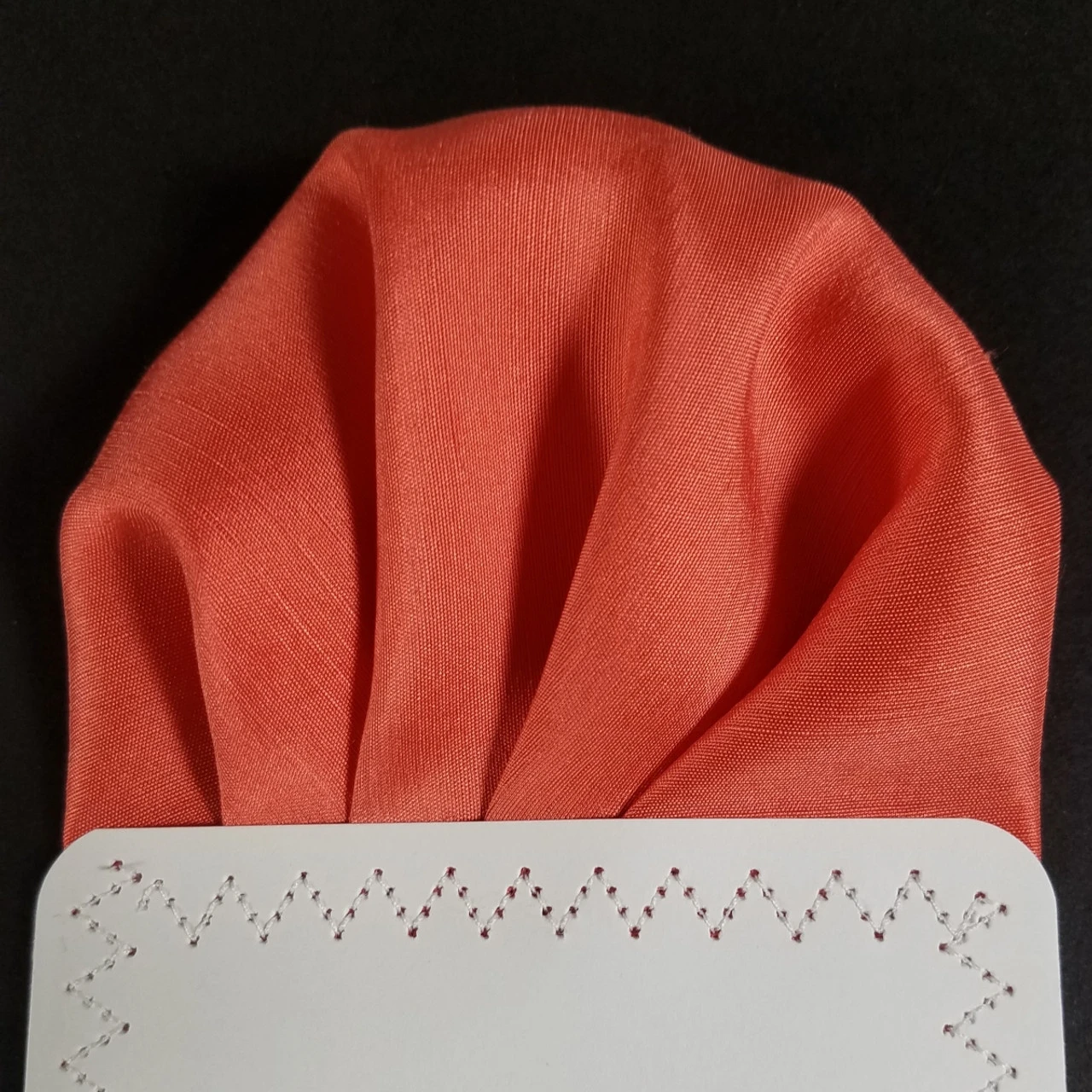 Dress up your suit, tux, blazer or sportcoat with a pre-folded pocket square. It’s easy to use and looks like a well placed full size pocket square. Just slip the insert into your breast pocket! You can also trim the bottom of the card to shorten the height of the pocket square showing.