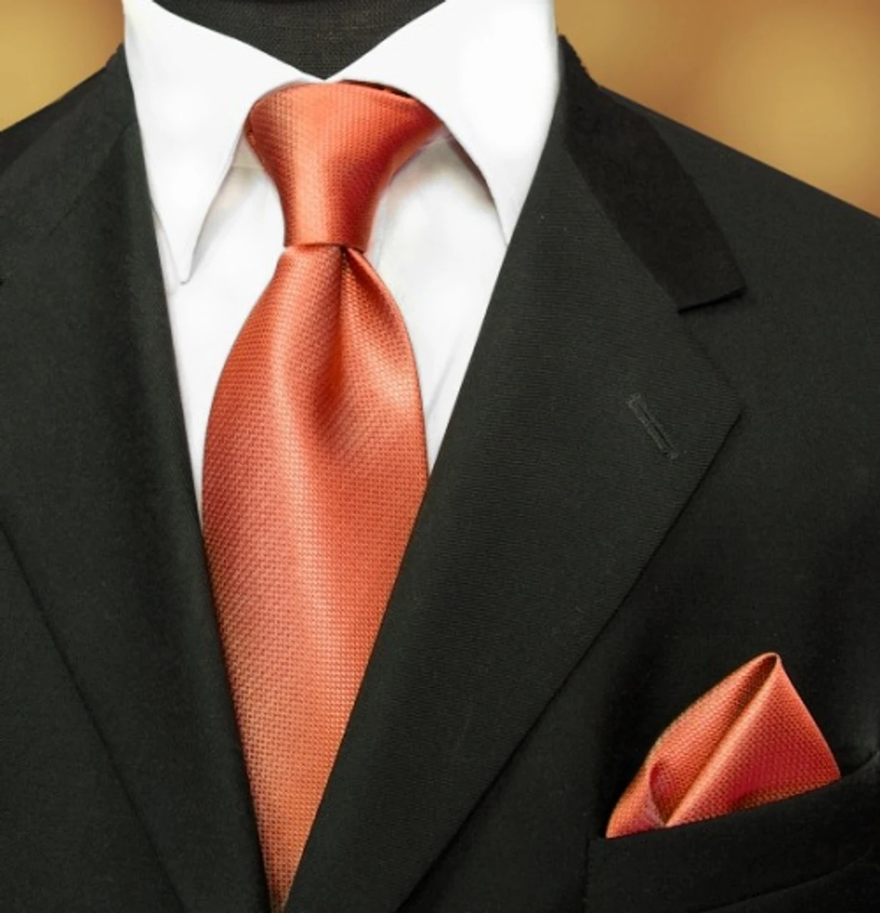 100% Woven Silk Necktie With Pocket Square – Copper