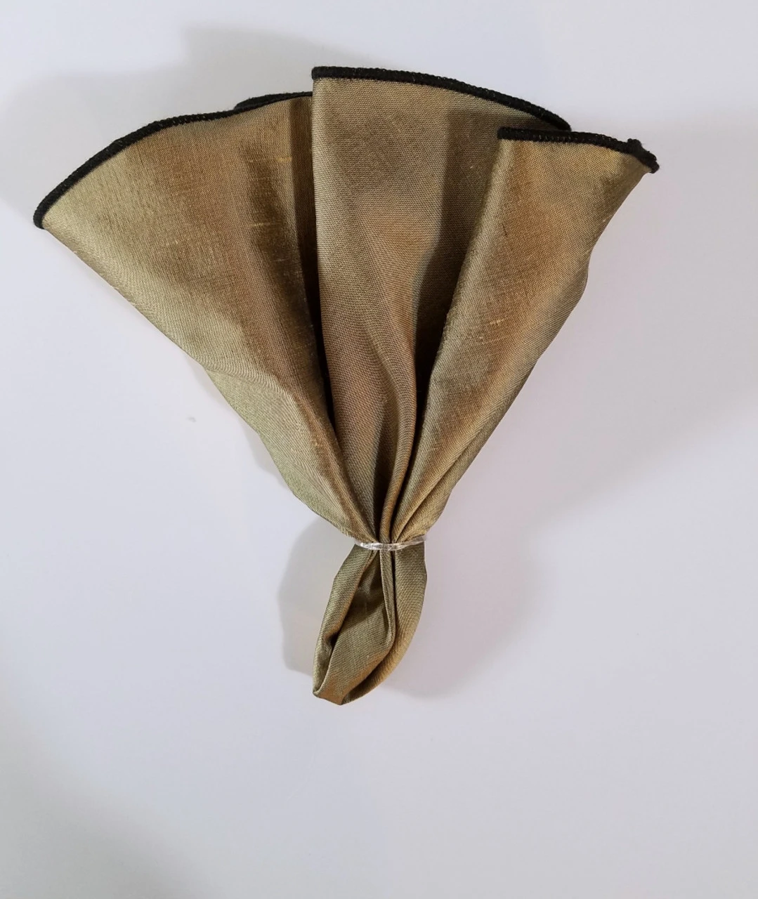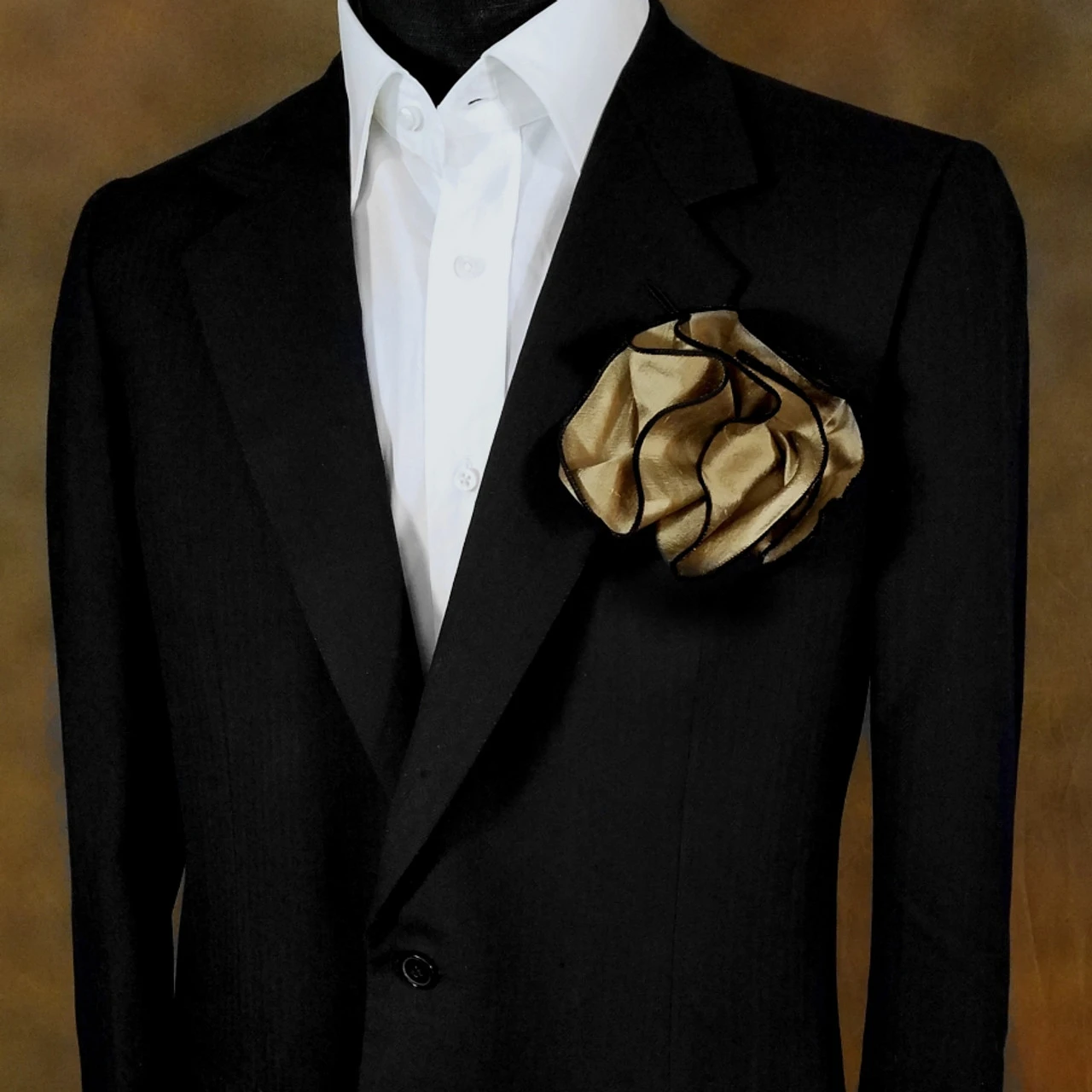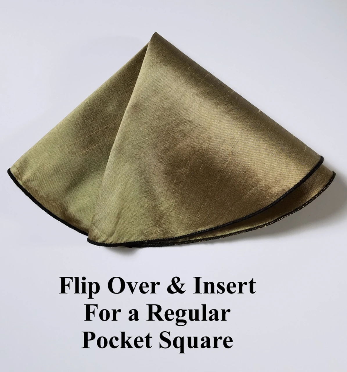 Antonio Ricci 2-in-1 Dark Gold 100% Dupioni Silk Pouf Round Pocket Square