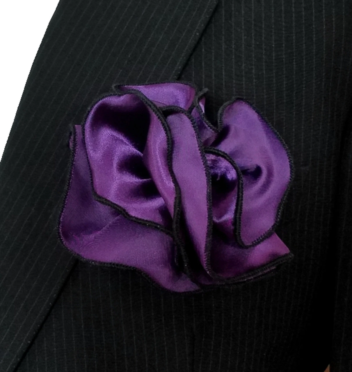 - Color(s): Dark Purple Pocket Square with Black Trim