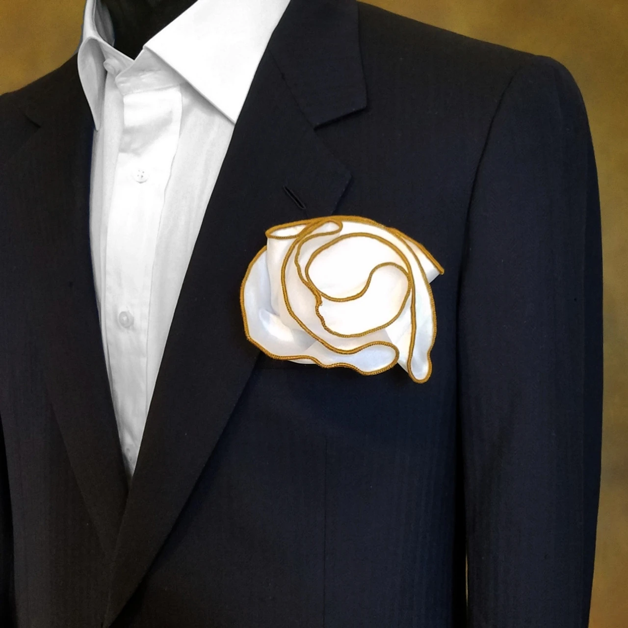 - Color(s): White Pocket Square Contrasted with Dark Tan Trim