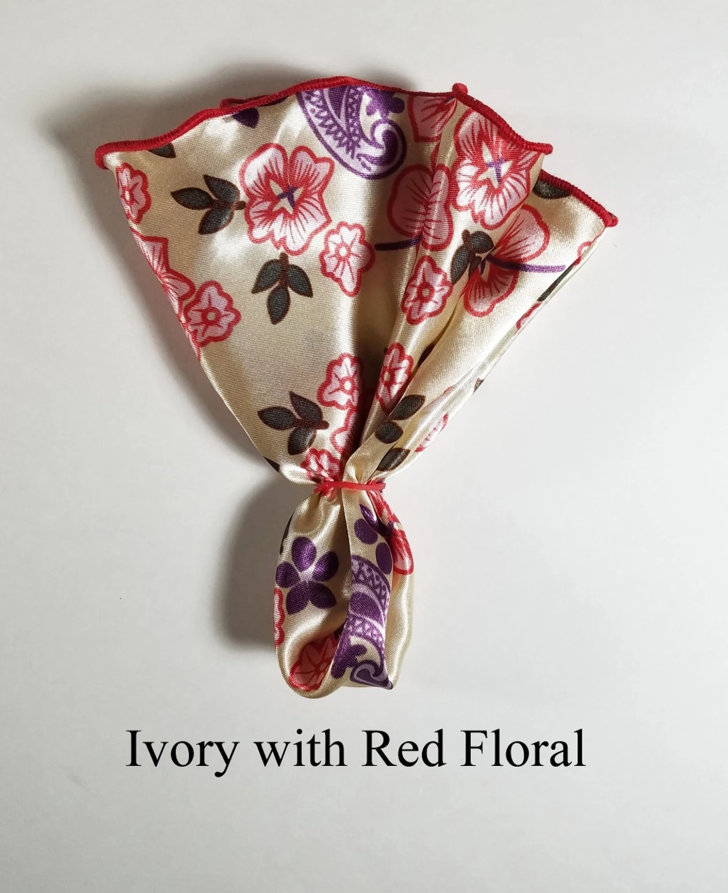 Antonio Ricci 2-in-1 Pouf Round Pocket Square – Ivory With Red Floral