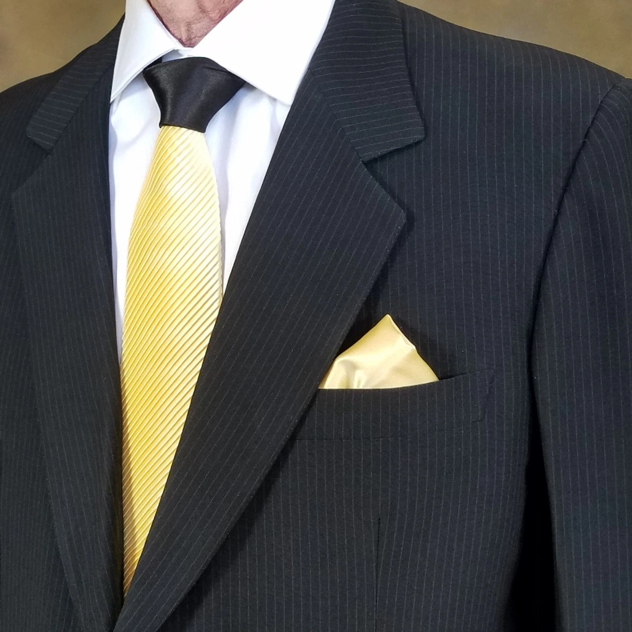 Antonio Ricci Contrasting Pleated Tie With Pocket Square – Yellow