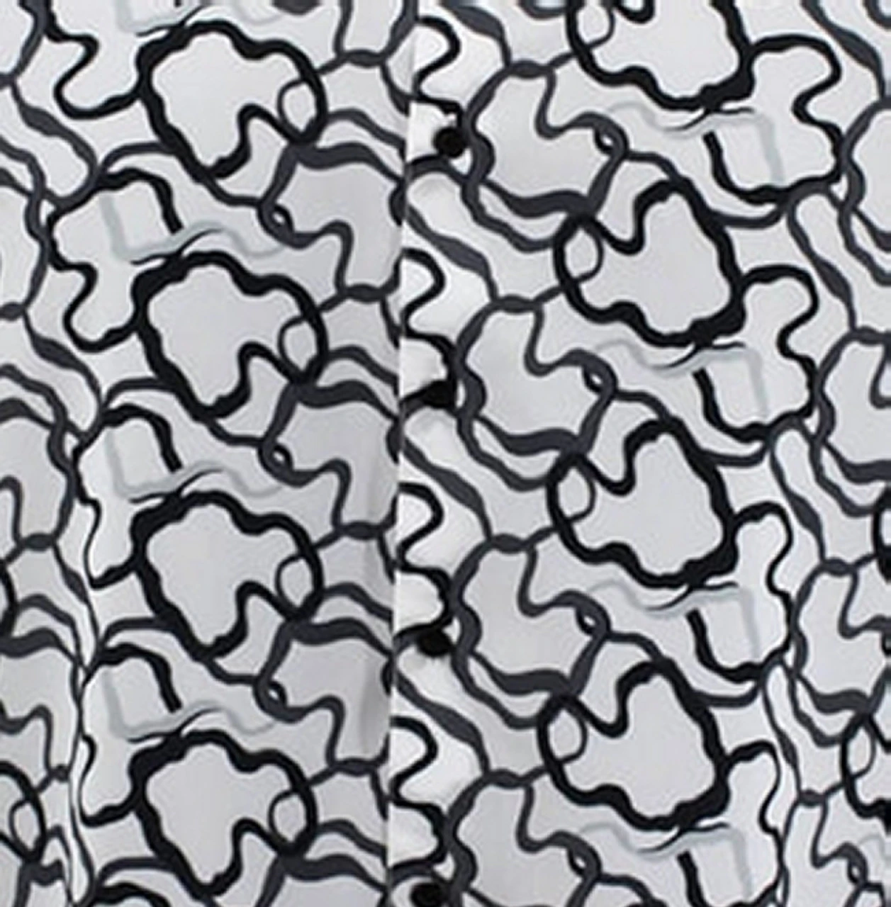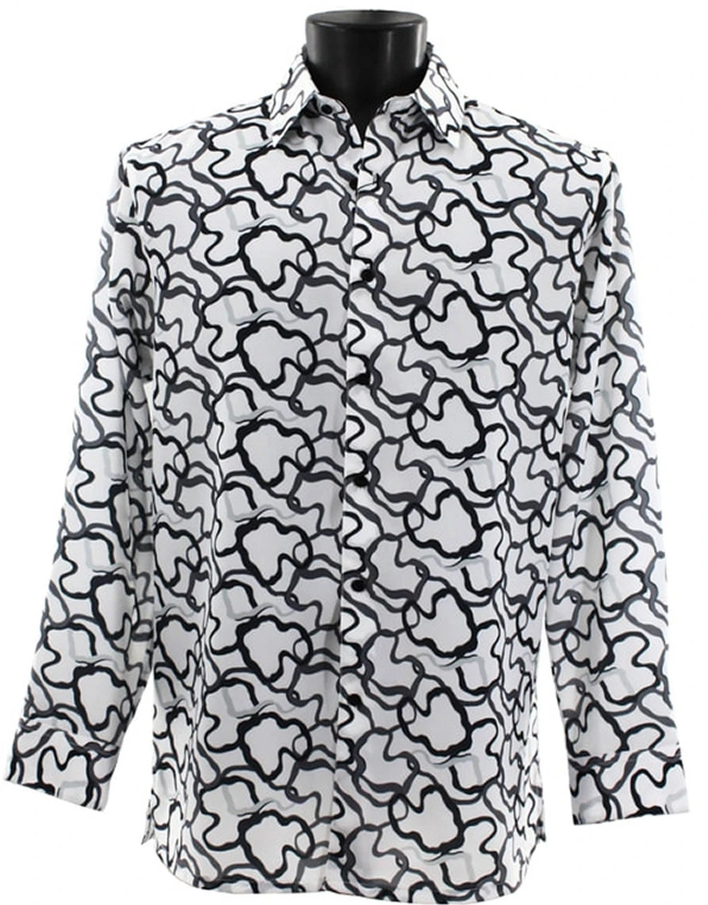 Bassiri Long Sleeve Camp Shirt – Black & Grey Squiggle Design