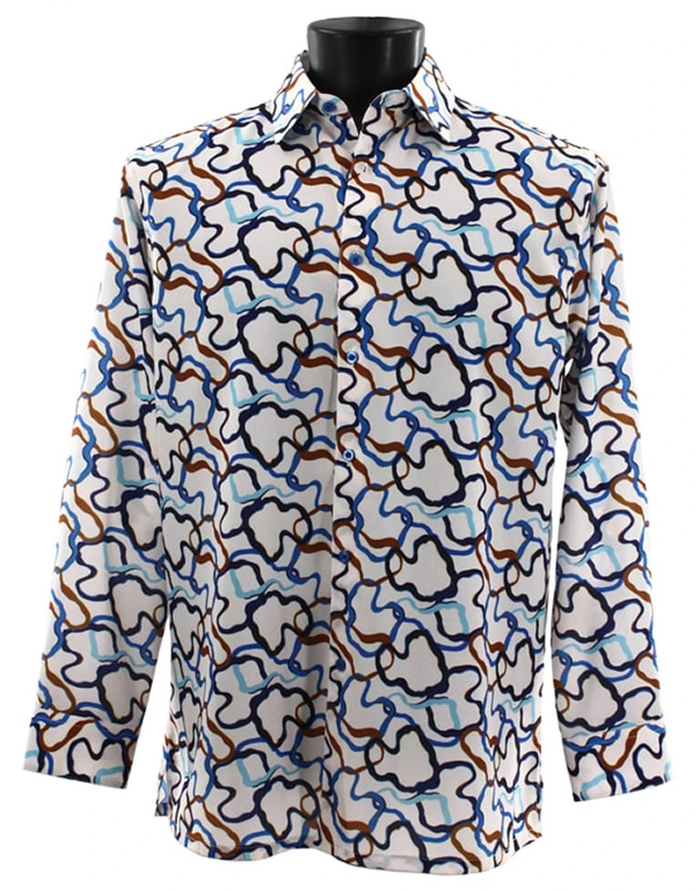 Bassiri Long Sleeve Camp Shirt – Multi-Color Blue Squiggle Design