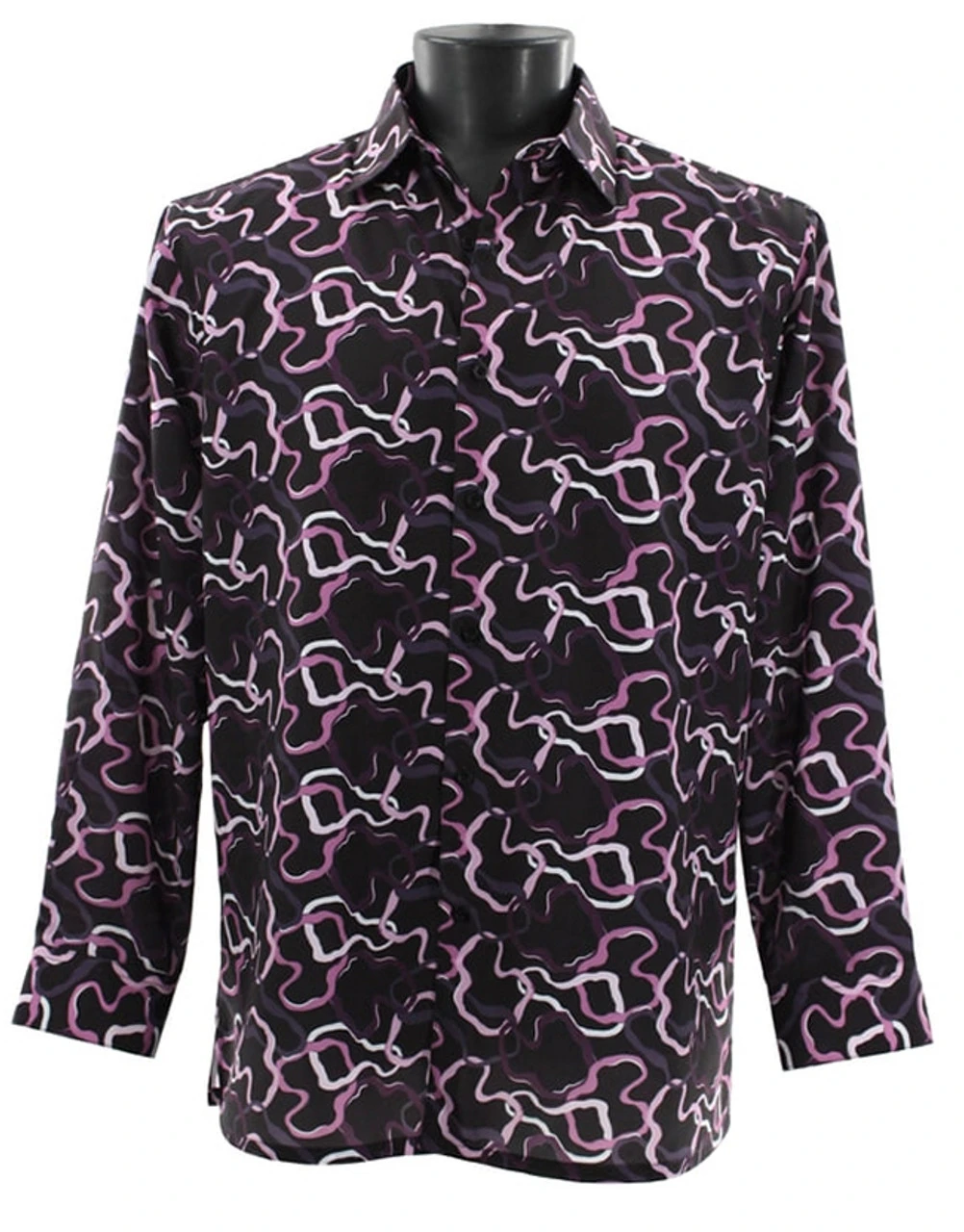 Bassiri Long Sleeve Camp Shirt – Purple & Pink Squiggle Design