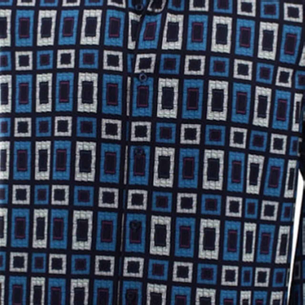 Bassiri Long Sleeve Camp Shirt – Turquoise & Navy Rectangle Design