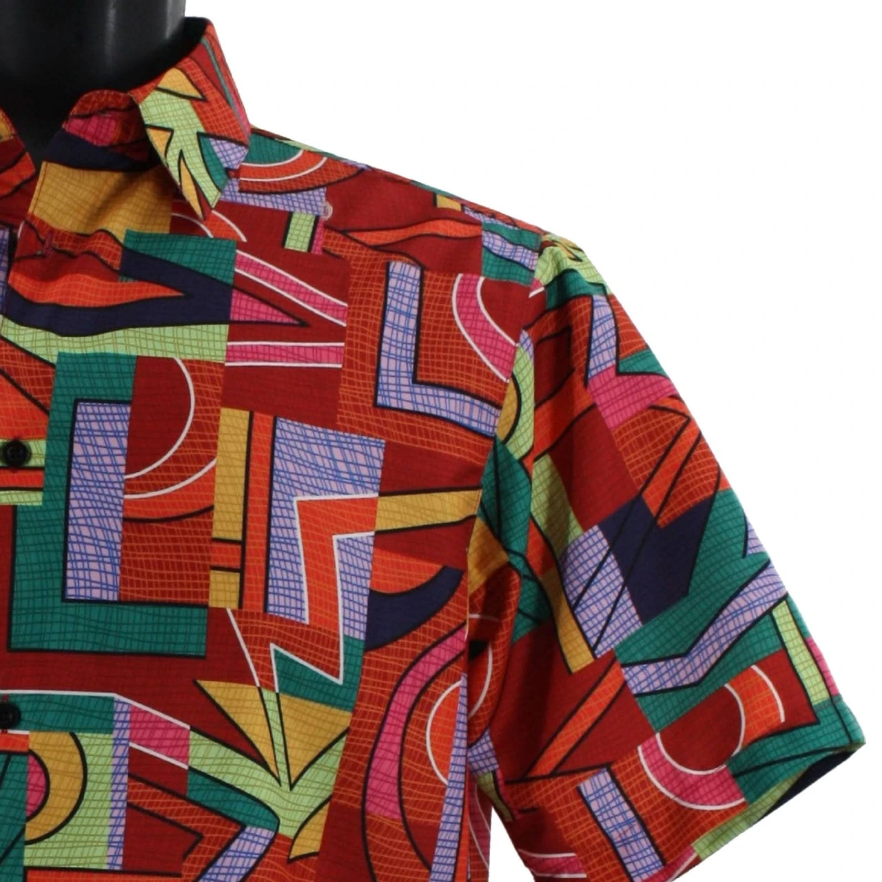 Bassiri Short Sleeve Camp Shirt – Modernism Red Mix