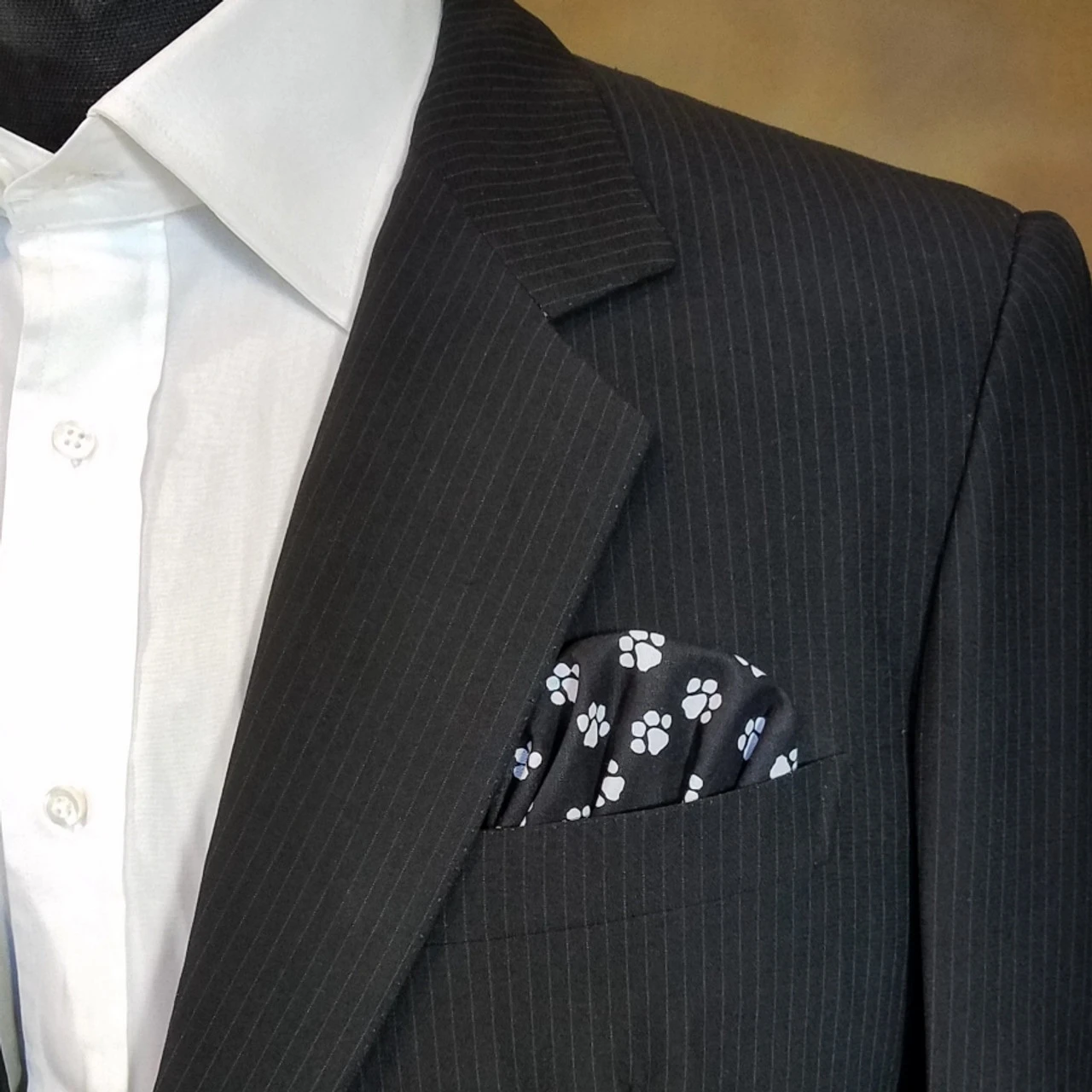 Dress up your suit or sportcoat with a pre-folded pocket square. It’s easy to use and looks like a well placed pocket square. Just slip the insert into your breast pocket and cut or fold cardboard to adjust to the height size you want.