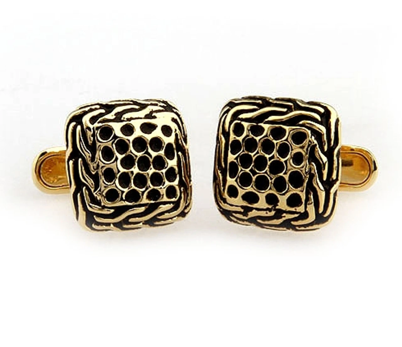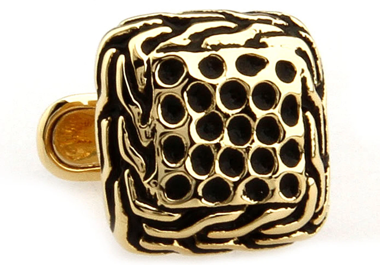 Black Design Square Gold Cufflinks (V-CF-50833-G)