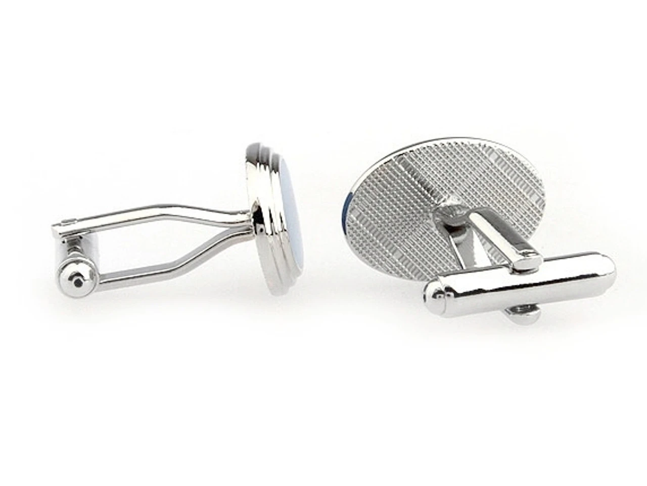 Blue Enamel Oval Design Cufflinks (V-FCF-50108)