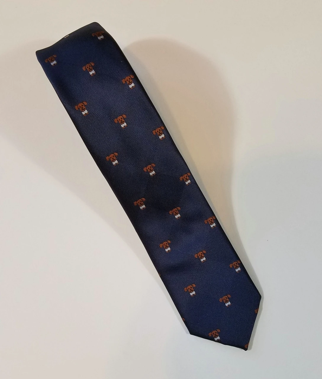 Brown Puppy Dog Theme Dark Blue Skinny Tie