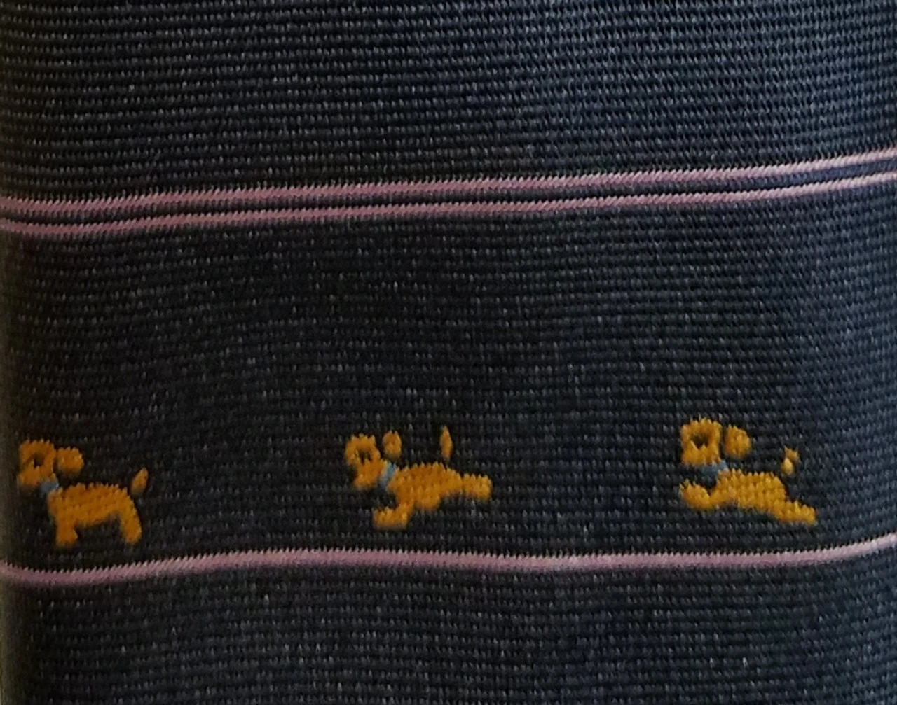 - Colors: Dark Blue with Tiny Brown Dogs