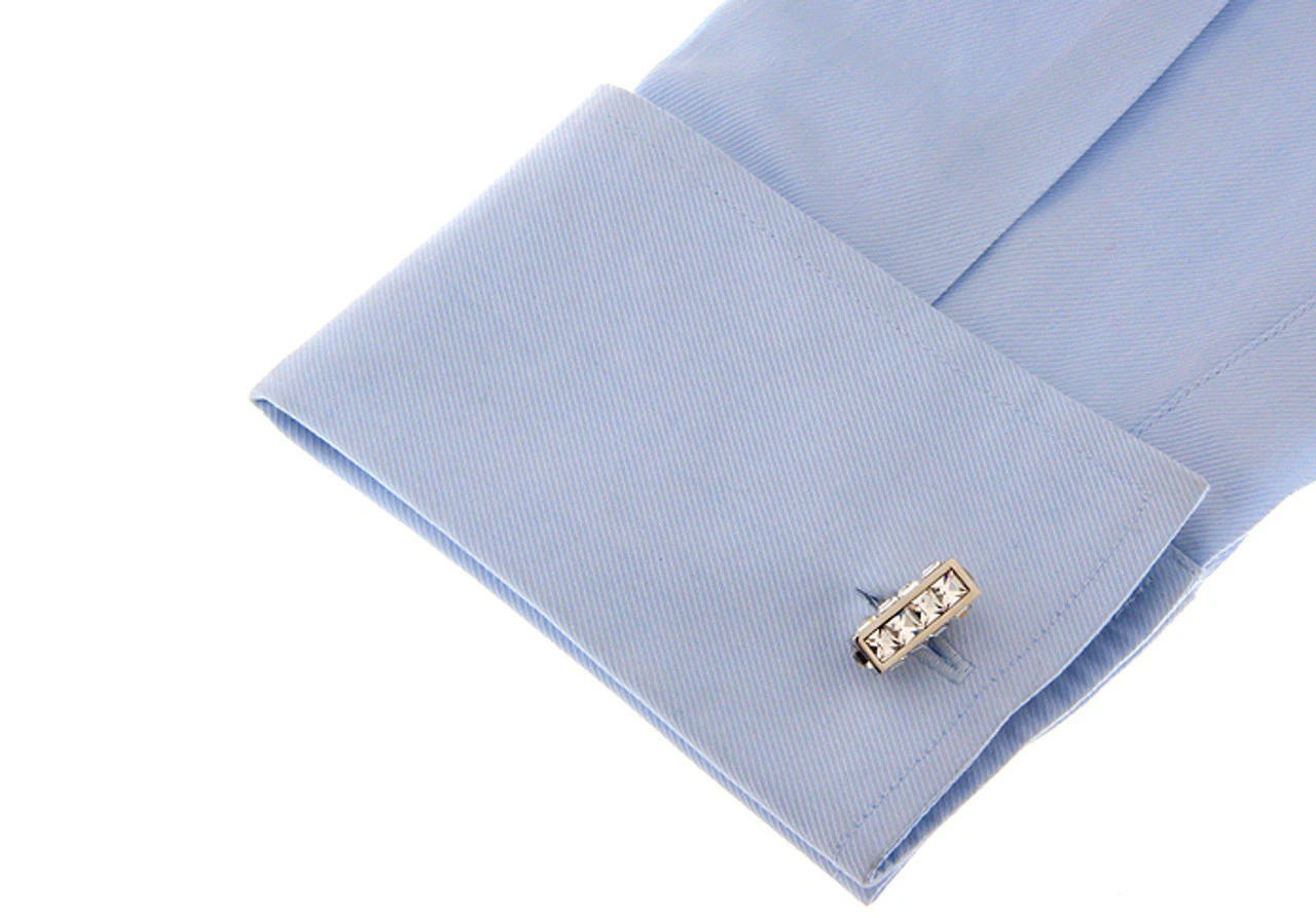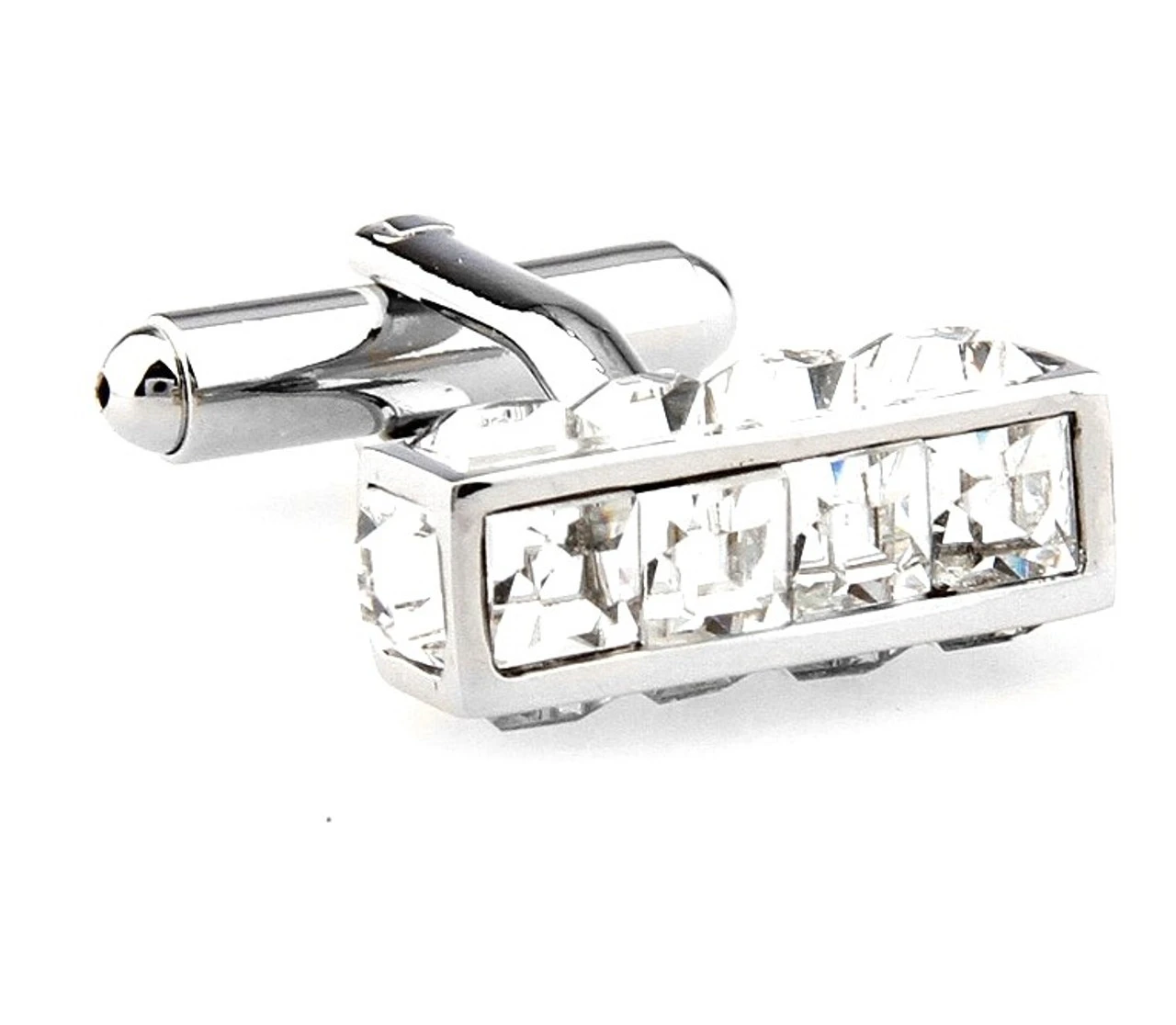Crystal Long Cube With Square Crystals Cufflinks (V-CF-C7708C)