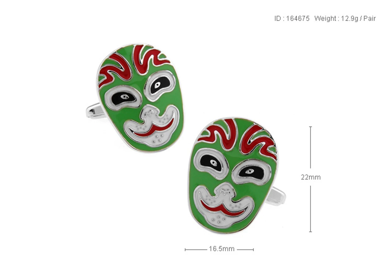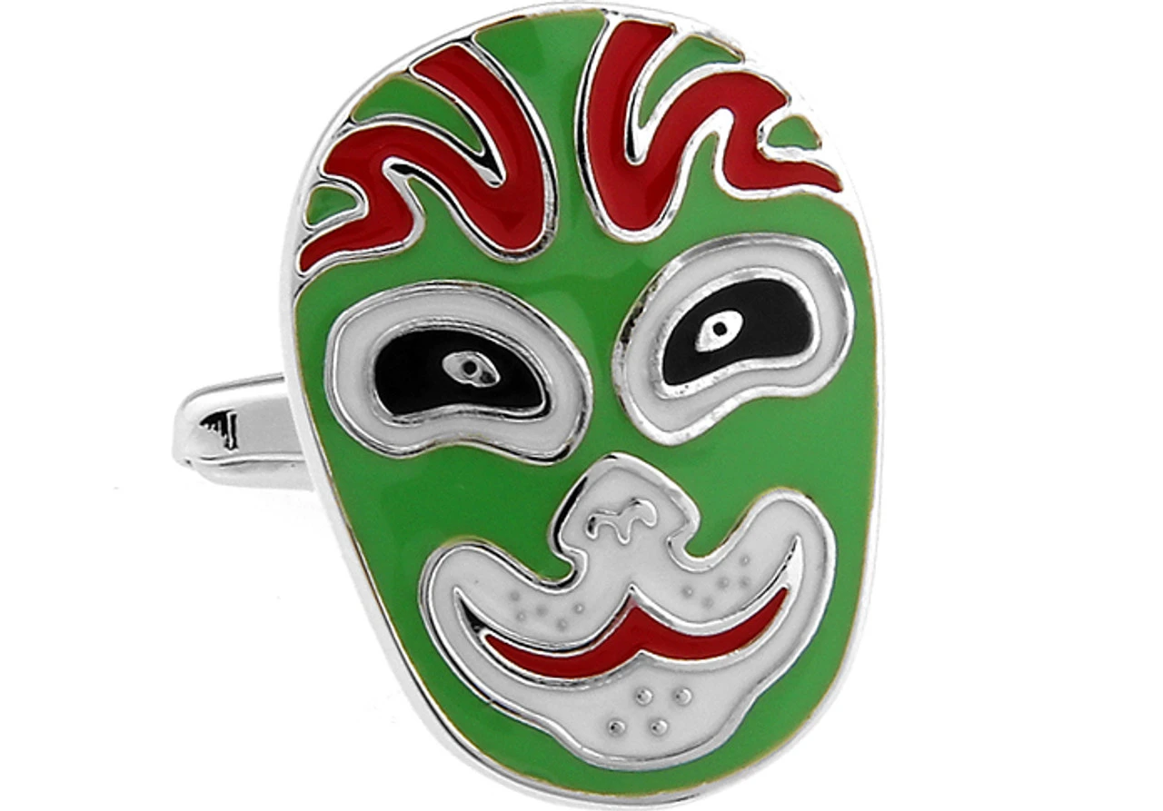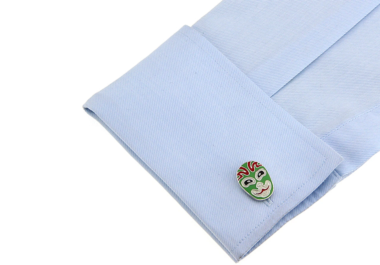 Green Kabuki Mask Cufflinks (V-CF-64675)