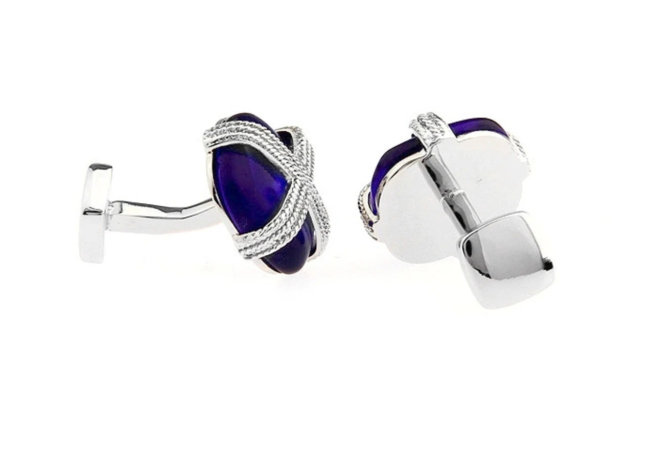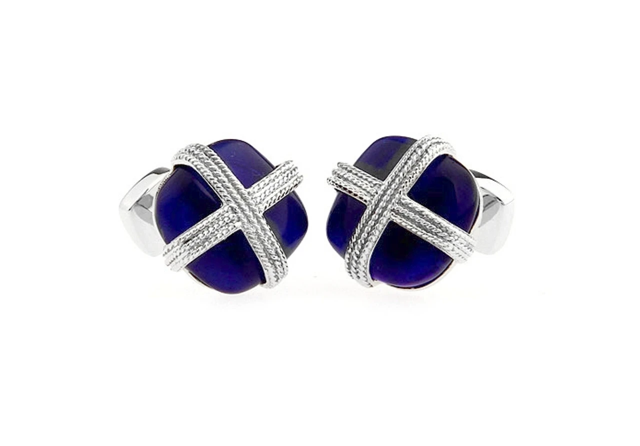 Large Royal Blue Cabochon Cat’s Eye Stone Cufflinks (V-CF-G80002RB-S)