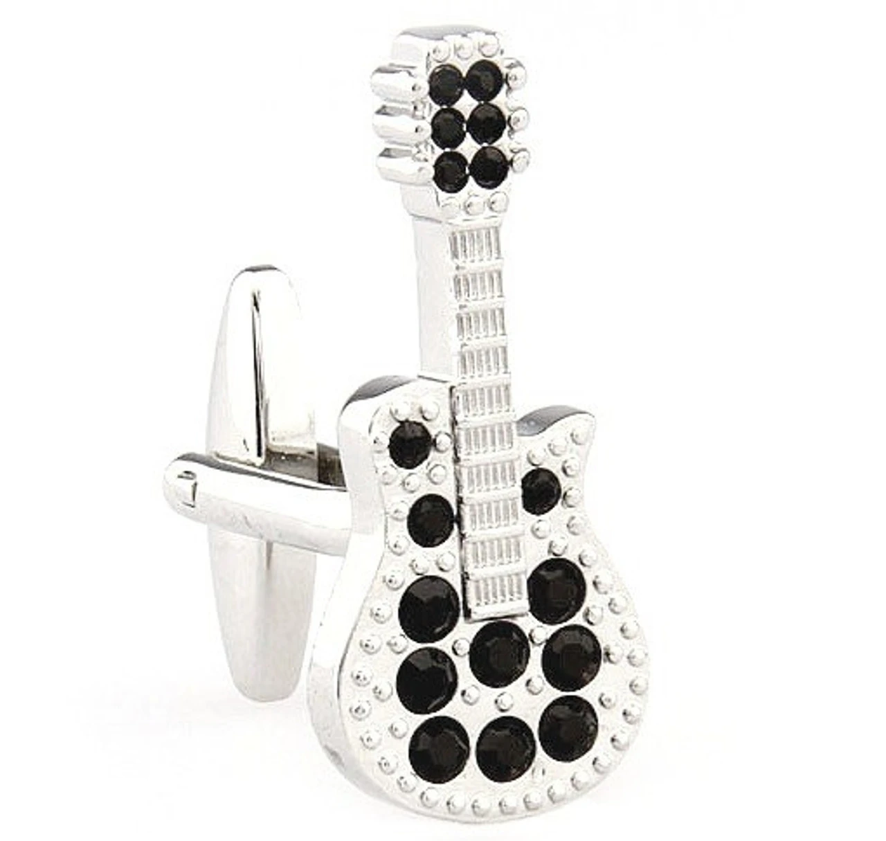 Large Silver Guitar With Black Crystals Cufflinks (V-CF-C64933B-S)