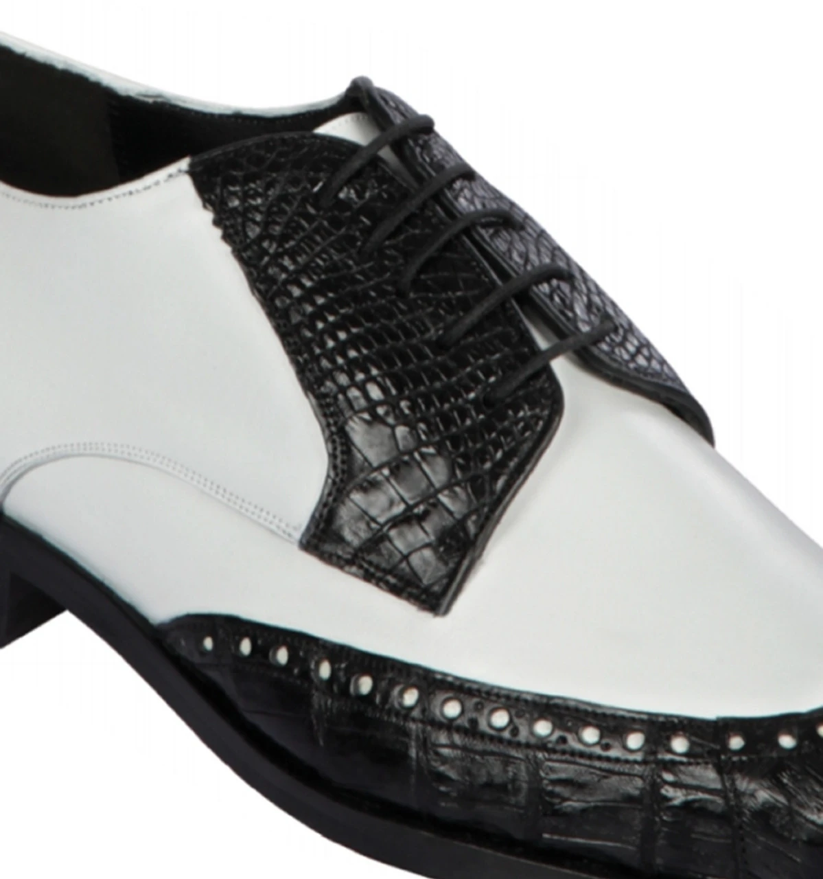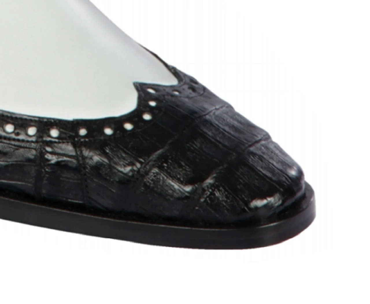 Lombardy – Genuine Caiman Belly Wingtip Dress Shoe – Black & White
