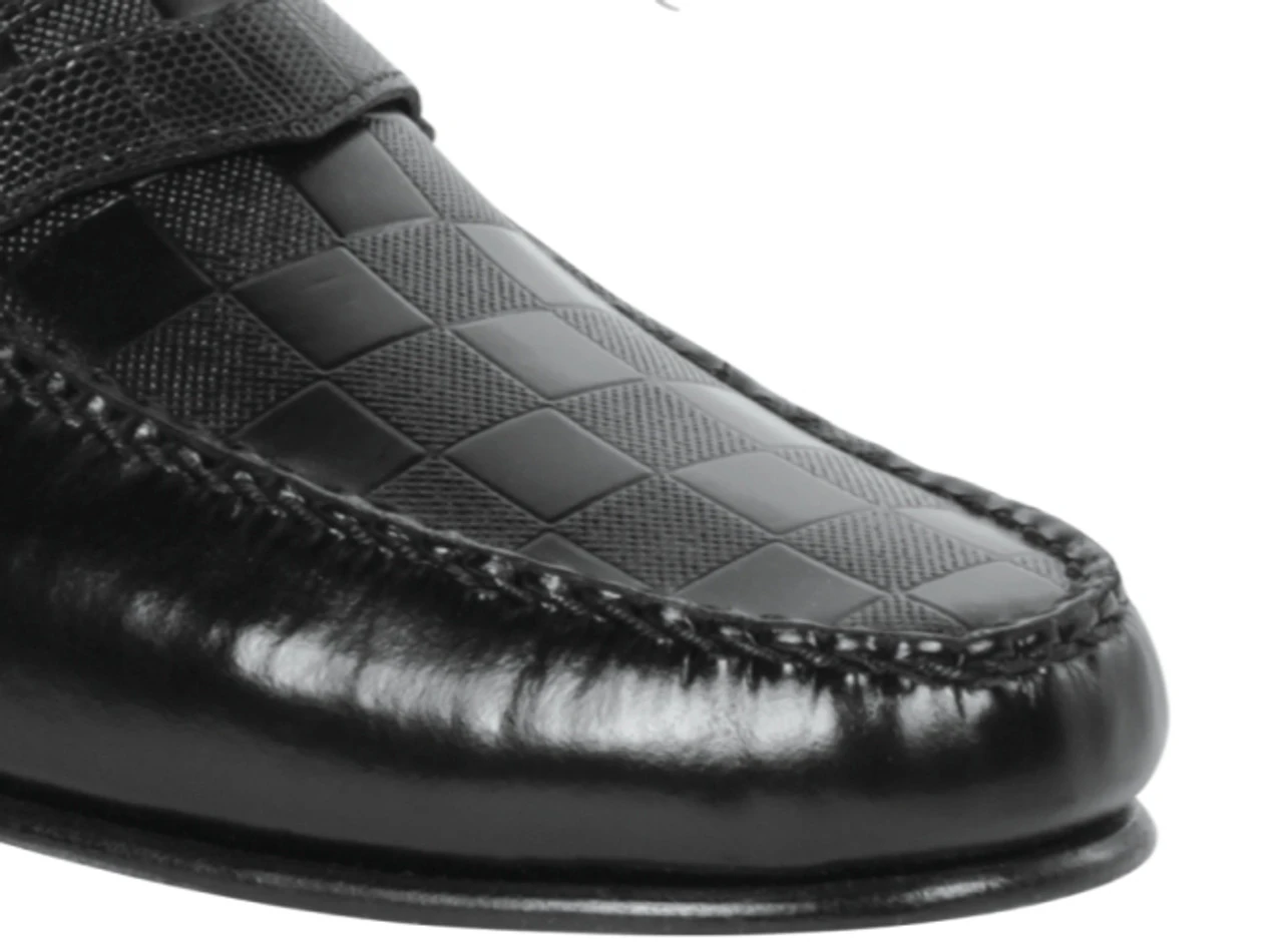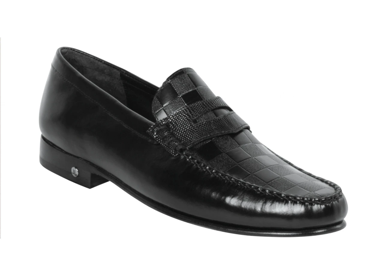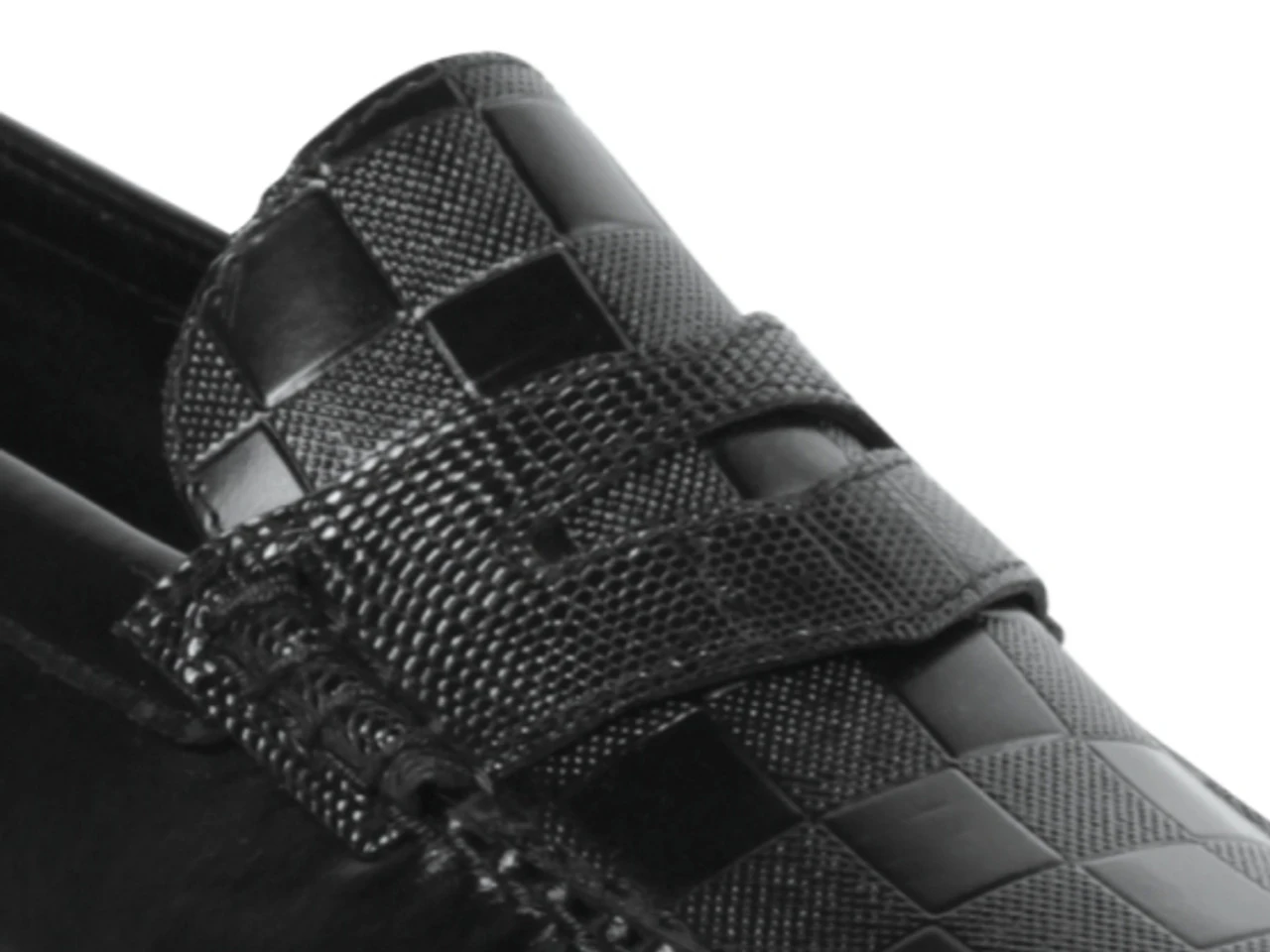 Lombardy – Genuine Teju Lizard Check Pattern Penny Loafer – Black