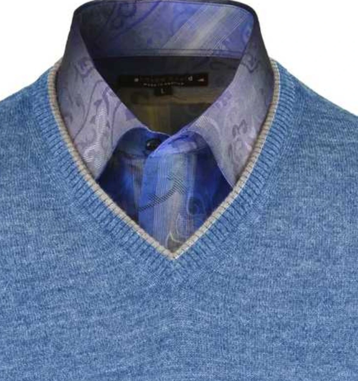 - V-Neck with Contrasting Color Tipped in Grey