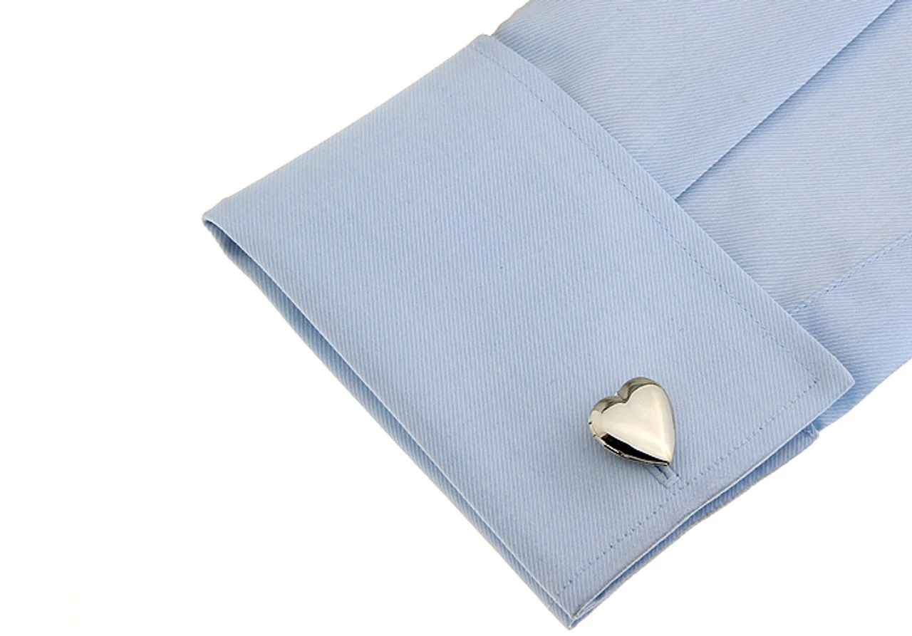 Photo Locket Silver Heart Cufflinks (V-CF-M57361-S)