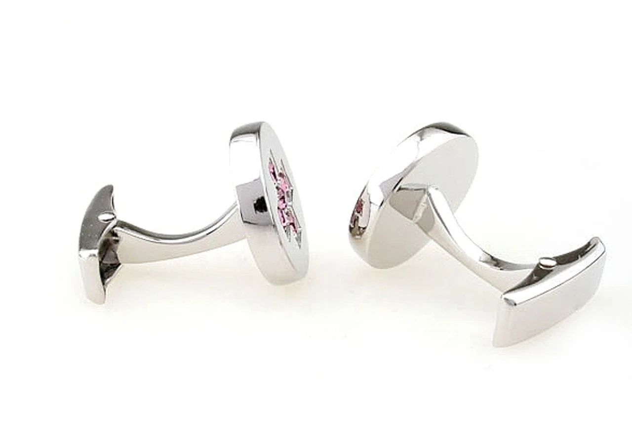 Round Pink Crystal Cross Center Cufflinks (V-CF-C6941P-S)