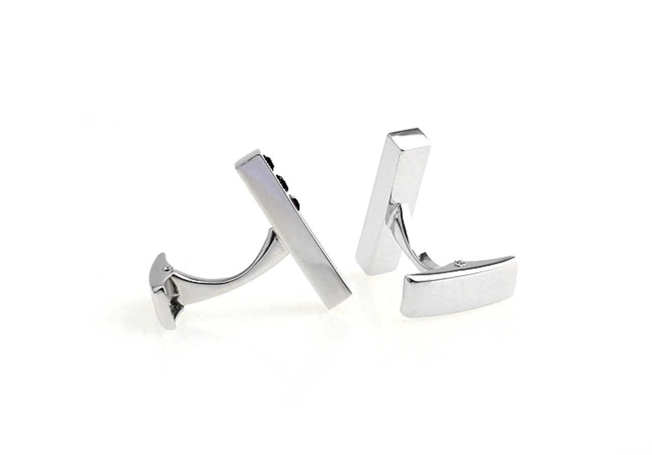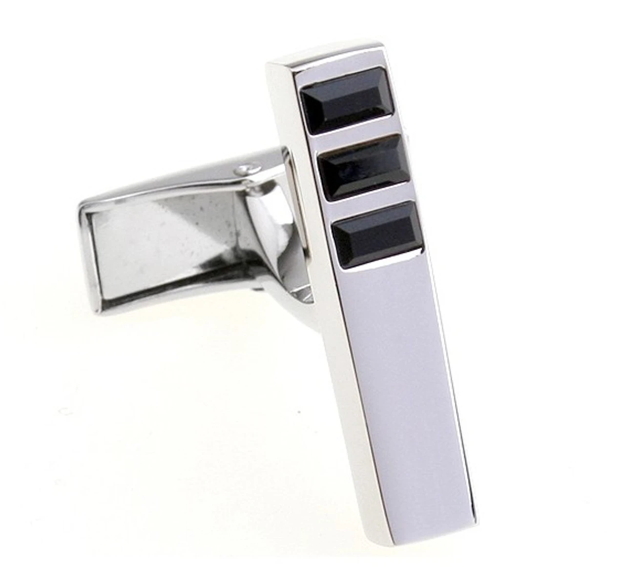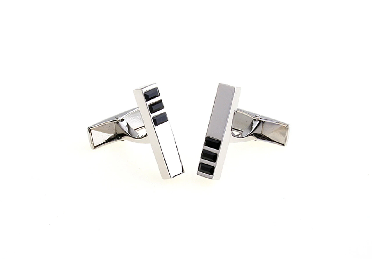 Silver Linear Design With Black Swarovski® Crystal Cufflinks (V-CF-C504B-S)