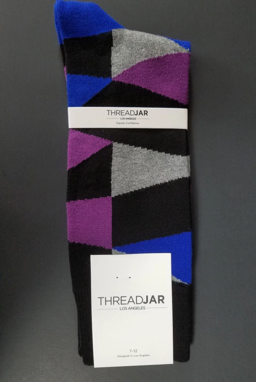 ThreadJar Premium Cotton & Spandex Socks – Black Geometric Designs