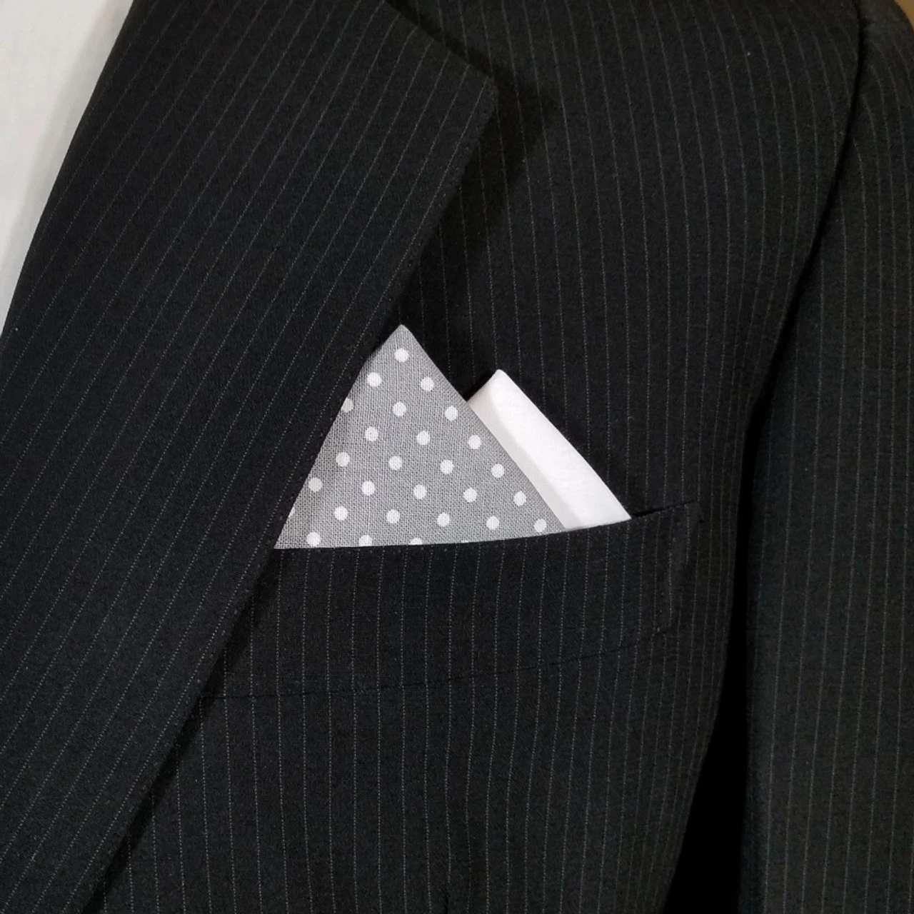 - Color – White Dots on Light Grey with a White Two-Tone Handkerchief