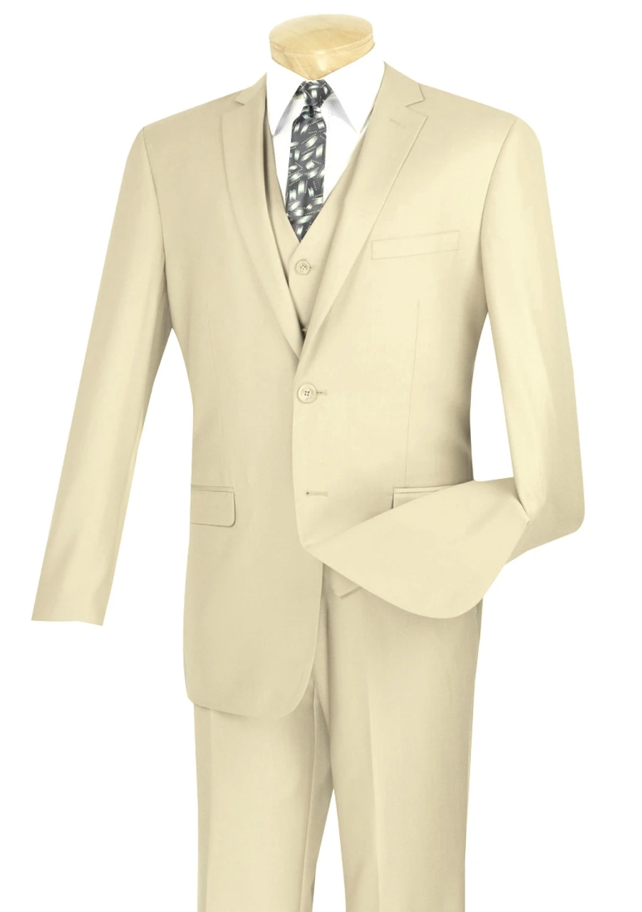 Vinci 2-Button Ivory Suit With Vest – Slim Fit
