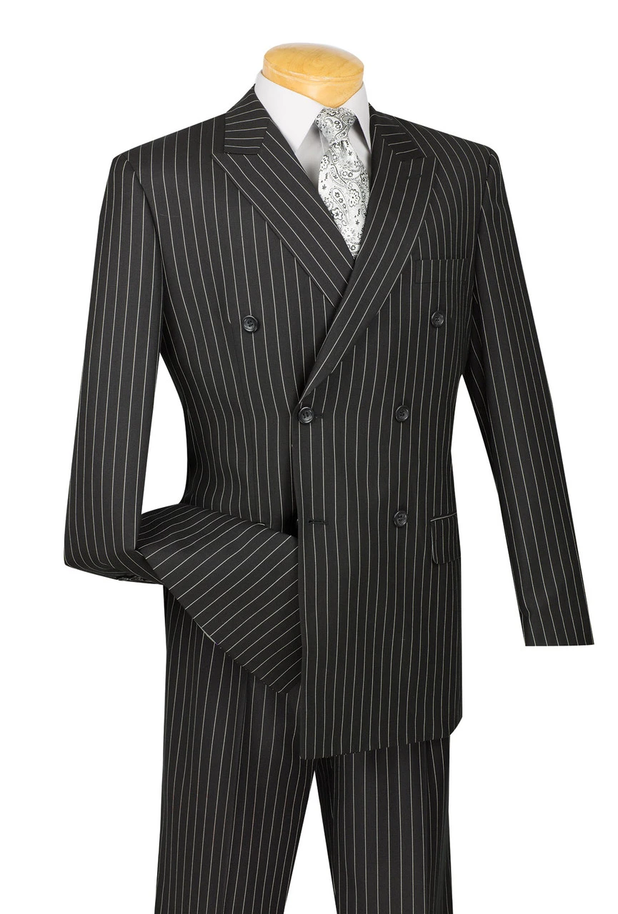 Vinci Black Bold Pinstripe Double-Breasted Suit With Pleated Slacks