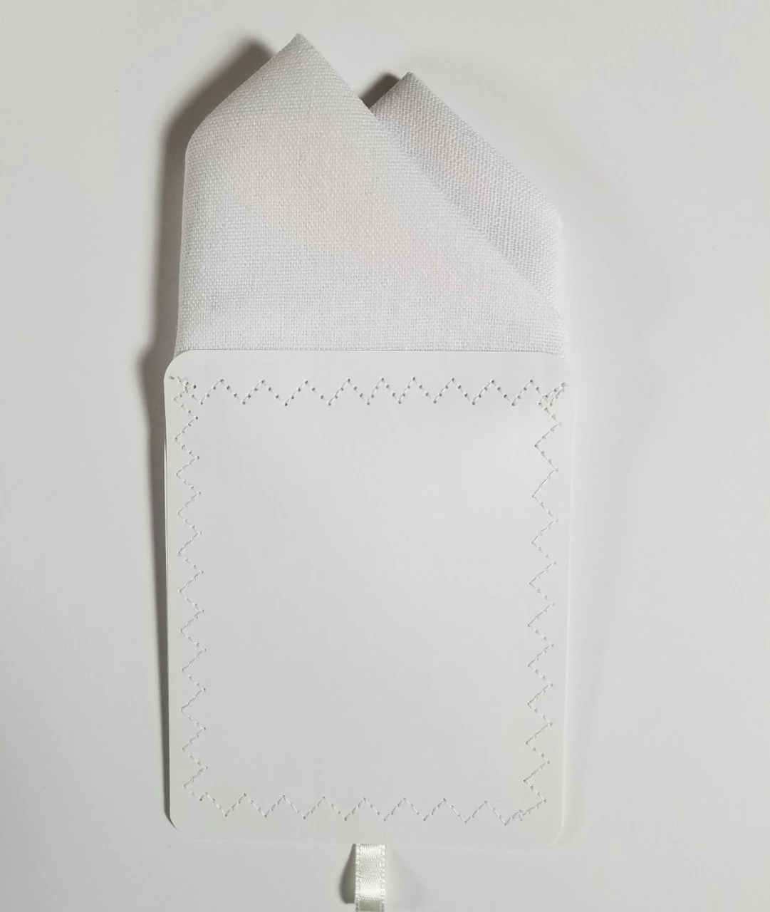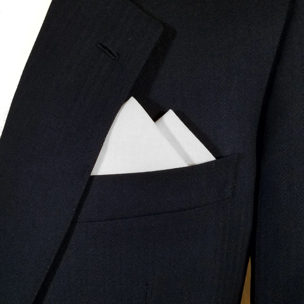 Dress up your suit or sport coat with a pre-folded pocket square. It’s easy to use and looks like a well placed pocket square. Just slip the insert into your breast pocket and adjust height to your taste. Trim bottom of card if you want less pocket square showing.